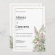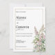Elegante y romántico, estas invitaciones de boda cuentan con un ramo botánico de flores de menta rosa suave. Delicados ilustraciones florales le dan un toque caprichoso, perfecto para bodas de jardín o primavera. Imprimidos en cartón premium, combinan encanto natural con sofisticación atemporal. Todos los diseños están impresos.