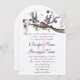 Invitaciones a la Boda de Aves con Amor Vintage. El vino de frambuesa profundo florece en una rama gris para un ambiente rústico y romántico.