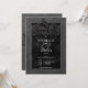 Traslade a sus huéspedes a un mundo de oscuridad y encantadora elegancia con nuestra vintage invitación a bodas góticas. El fondo negro profundo y envejecido prepara el terreno para un sorprendente contraste, a medida que el texto en negrita blanco emerge de intrincados cuadros de texto en negro. En el pináculo de esta invitación, un borde gótico tridimensional adornado con un cuervo negro real captura la esencia del misterio y el romance. La parte trasera está adornada con dos viñas entrelazadas de rosas negros formando sutilmente un corazón alrededor de dos cuervos abrazadores, lo que añade un toque de encanto dramático. Desate la magia y marca el tono para un día de boda inolvidable. Creado por Simply Farmhouse Press.