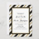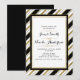 Invitaciones de boda de rayas horizontales elegantes en negro, blanco y dorado.
