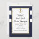 Invitación Boda de rayas náuticas de ancla dorada y blanca de