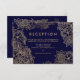 Invitación Boda de recepción de flores elegantes oro azul mar