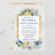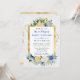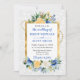 Magnífica acuarela Azul y amarillo Flores de verano en un fondo de encaje blanco floral con borde de Relieve metalizado dorado