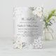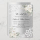 Una invitación moderna y elegante a la renovación. Un fondo falso plateado decorado con flores blancas, rosas y encaje blanco. Personalice y agregue sus nombres y detalles.
