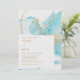 Invitación Boda de resumen de acuarela dorada y azul de lujo