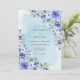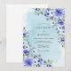 Sutiles lavados de azul claro forman un suave telón de fondo para vibrantes flores de pervinca y profundas violetas. El exuberante follaje se entrelaza con pétalos pictóricos, creando una atmósfera etérea y romántica. Este diseño evoca una sensación de elegante serenidad, perfecto para una sofisticada celebración.