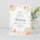 Evoca un ambiente costero sereno con este diseño romántico con delicadas conchas y elementos botánicos. Una paleta suave y natural crea un ambiente tranquilo, perfecto para una unión marítima íntima.