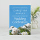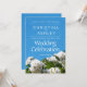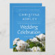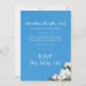 Hermosa invitación a una boda floral con rosas blancas de ensueño y un cielo azul claro de verano.