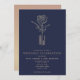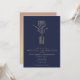 Elegante y moderna, esta invitación de boda monogramada de rosa de oro y azul marino combina una ilustración floral minimalista con iniciales monogramadas sofisticadas. El fondo azul marino profundo crea un contraste llamativo con los acentos de rosa de oro metálico, dando a este diseño una apariencia lujosa y atemporal. Perfecta para parejas que quieren una invitación clásica pero moderna para su día especial.