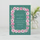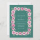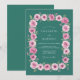 Los tonos verdes azulados ricos proporcionan un telón de fondo audaz para este sofisticado diseño botánico. Las rosas rosadas exuberantes están meticulosamente dispuestas con delicado follaje verde para crear una exhibición vibrante. El ambiente es romántico y elegante, combinando tonos profundos de joyas con la suavidad de las flores de acuarela. Estos elementos florales pictóricos ofrecen una estética atemporal para un evento formal.