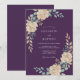 Un fondo profundo de ciruela establece un tono sombrío y romántico para este diseño floral. Delicadas rosas crema se combinan con hojas suaves de color azul verdoso y salvia en un estilo de acuarela pintoresca. Los sutiles acentos de follaje bronceado proporcionan un contraste terrenal con la rica paleta de colores oscuros. Esta estética botánica es ideal para una elegante ocasión nocturna.
