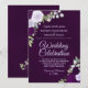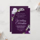 Esta hermosa invitación a la boda de la moda boho presenta un fondo audaz de mármol de ciruela profunda, lo que la hace única y visualmente llamativa. Las obras de arte incluyen una abundancia de rosas acuáticos pintados a mano en tonos púrpura y lavanda, así como estribillos de hojas de eucalipto, flores de lavanda y vegetación en el jardín. La tipografía incluye elegantes letras de guiones con espacio para todos los detalles importantes. ¡Una forma encantadora de invitar a tus amigos y familiares a compartir tu alegría en tu día especial!