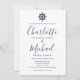 Invitación Boda de Rueda de Barco de la Marina Azul Script