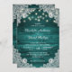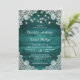 Nuestras rústicas invitaciones verde azuladas para bodas con luces de cuerda y encaje floral blanco sobre un fondo de madera de granero son perfectas para invitar a sus invitados a su verde azulado rústico campo, patio trasero o fiesta de bodas de granero.