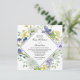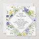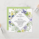 Una invitación única a la boda cuadrada con un bonito estilo boho, este diseño presenta flores silvestres en tonos acuáticos mixtos de morado, azul, amarillo y blanco con vegetación como adorno de viñas. Las flores rodean un marco cuadrado diagonal con algunos pétalos derramándose sobre el marco en un estilo sin preocupaciones. El reverso de esta invitación es una combinación de tonos verdes. Puede cambiar este color a cualquier otro color (incluido el blanco) seleccionando "personalizar" y seleccionando un color de fondo diferente. Reemplace el texto de ejemplo que se muestra en la plantilla de diseño con los detalles de su boda. Puede agregar o quitar líneas de texto y cambiar las fuentes seleccionando "personalizar". Si el texto necesita un reposicionamiento después de realizar los cambios, basta con deslizarlo en su sitio utilizando el ratón o el dispositivo señalador.