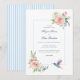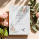 Establece el tono para una celebración romántica y atemporal con este diseño de boda floral de acuarela, creado para parejas que aman la elegancia suave y los detalles reflexivos. La parte delantera presenta delicadas flores rosadas e ivories combinadas con exuberante follaje, enmarcadas en un diseño limpio y aireado que se siente clásico y fresco. Un encantador colibrí de acuarela añade un toque simbólico sutil de amor, alegría y nuevos comienzos.