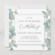 Este diseño, una elección popular en las invitaciones nupciales durante la pandemia del coronavirus, ha sido redactado especialmente para transmitir en vivo la ceremonia de su boda. Las flores de la vegetación del eucalipto resaltan esta moderna invitación a la boda en forma de cuadrado, con sutil elegancia. El diseño del texto de la fuente serif añade un refinamiento adicional para transmitir los detalles de su boda de forma muy agradable. Este esquema de color funciona bien para los bodas en cualquier temporada del año. Personalice la plantilla de texto en la parte delantera y trasera de esta invitación en la plantilla de texto fácil de usar. Puede cambiar la redacción para que se ajuste a sus preferencias personales. Si necesita líneas de texto adicionales, seleccione "hacer clic en el personalizar más adelante" en la parte inferior de la plantilla de texto. Esto abrirá el diseño para un mayor nivel de personalización.