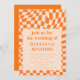 Invitación Boda de tablero de ajedrez retro Naranja todo en u
