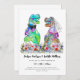 Los huéspedes podrán deleitarse con esta divertida invitación a bodas con la temática de los dinosaurios, con una divertida y colorida novia de dinosaurios y un novio parados en un colorido prado de flores silvestres. Detalles del sitio web RSVP y código QR en la parte posterior. Fácil de personalizar con los nombres de novios y novios, fecha de boda y todos los detalles. Ilustraciones divertidos T-Rex de novios y novios con un guión moderno y caprichoso de tipografía. Obra original de la artista Catherine Sweetman