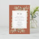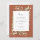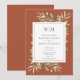 Con delicadas hojas de verdor de acuarela sobre un fondo de terracota, esta elegante invitación de boda botánica puede ser personalizada con las iniciales de tu monograma y la información especial de tu día de boda. Diseñado por Thisisnotme©
