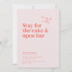 La tarjeta de diseño de Belmont muestra una tipografía grande que dice "Ven por el boda. Quédate con el pastel y el bar abierto". A medida que echan un vistazo a continuación, los detalles esenciales de la celebración se presentan con elegancia en un pequeño y clásico tipo de letra serif. En la parte trasera hay un lienzo para otra hermosa foto de la pareja, que permite echar un vistazo a su viaje compartido. Un mensaje personalizado, cuidadosamente diseñado por la pareja, agrega un toque cálido e íntimo, invitando a los seres queridos a unirse a la celebración de su unión.