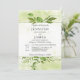 Los detalles de tu boda se verán fabulosos enmarcados arriba y abajo con vegetación hecha de diferentes productos botánicos incluyendo hojas, helechos y hierbas silvestres en tonos verde césped, aguacate, salvia y verde manzana sobre un suave fondo de salpicadura de color verde. La plantilla es fácil de personalizar con su propia información utilizando una combinación de fuentes modernas y caligráficas. Si desea este diseño en un producto similar, por favor envíeme un correo electrónico a shutterbug600@yahoo.com. Asegúrese de incluir el enlace a esta invitación en su correspondencia.