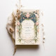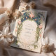 Disfrute del encanto romántico de la era victoriana con esta delicada invitación a la boda. El diseño es un paisaje suave de tonos pastel, con una mezcla de rosa pastel, verde sabio y azul marino, acentuada por suaves toques de melocotón y crema. El frente de la invitación muestra un elegante motivo floral que abarca un monograma central de tono dorado, que refleja el entrelazamiento de dos vidas. En la parte trasera, los detalles de la invitación están enmarcados en un exuberante arreglo de flores y botánicos, que recuerda a un jardín inglés sereno, todo ello rodeado de un paisaje vintage. La florida línea inspirada en el Art Nouveau y el murmullo de tonos pastel sobre el papel de alta calidad hacen de esta invitación una invitación eterna para su día especial.