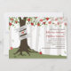 Invitación a una boda virtual en directo en otoño con un ilustracion de manzanos. El tronco envuelto con pancarta puede ser personalizado con los nombres de novia y novio. La palabra es de novia y novio junto con sus familias.