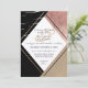 Esta moderna y elegante invitación a celebrar bodas es perfecta para un evento elegante y elegante. Mármol blanco y negro, oro falso rosa impreso, purpurina de oro brillante falso impreso y esquinas triangulares geométricas negras con un diseño falso de oro impreso y borde de diamante negro sobre un simple fondo blanco. Único, moderno, contemporáneo y original. ***NOTA DE DISEÑO IMPORTANTE: Para cualquier solicitud de diseño personalizado, como solicitudes de productos coincidentes, cambios de color, cambios de posición o cualquier otra solicitud de cambio, haga clic en el botón "MENSAJE" o envíe un correo electrónico al diseñador directamente a lafemme.art@gmail.com. Incluso puede enviarle un correo electrónico solicitando un diseño completamente personalizado y nuevo.