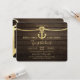 Ancla y nudo de cuerda náutica dorada sobre madera oscura, anuncio de "Tienen el nudo" para guardar la fecha con foto de compromiso en el reverso. Tarjeta práctica de tamaño 4.5 x 5.5 es una forma moderna y elegante de informar a sus invitados de su próxima boda de destino, boda náutica o boda en crucero.