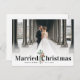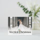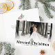 tarjeta de vacaciones de invitación boda moderna y sencilla con un guión rojo elegante y un mensaje de agradecimiento a sus invitados. La imagen de las parejas se puede personalizar.