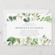 Elegantes invitaciones botánicas de boda con un borde superior e inferior de follaje acuático en tonos de primavera y verde musgo. Personalice la invitación a bodas de boho con los nombres de los bodas. La moderna invitación botánica a las bodas es perfecta para bodas de primavera y verano.