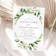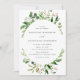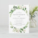 Elegante invitación a bodas botánicas con detalles bodas rodeados de un marco oval de color agua en tonos verde primavera y musgo. La moderna invitación a bodas de boho es perfecta para bodas de primavera y verano.