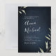 Moderna moda minimalista acuarela de diseño vegetal botánico sobre fondo azul marino, sencillo y elegante, ideal para boda moderno, boda rústico y bodas botánicas en verano y otoño. Ver todas las piezas coincidentes de la colección