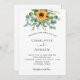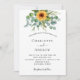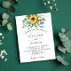 Un fondo blanco decorado con girasoles y vegetación eucaliptus. Personalice y agregue sus nombres y detalles del fiesta.
