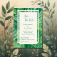 Este boda protege la tarjeta de invitación de fecha en diferentes tamaños, formas y papeles. Es el personalizable con su Intro, nombres y/o monogramas, ocasión, fecha y dirección. La combinación armoniosa de hojas tropicales de vegetación esmeralda, monstera, hojas de palma de la naturaleza y tonos verdes y tipografía. El superpuesto beige mínimo es para su personalización y en el reverso para sus monogramas. Hobinishop