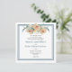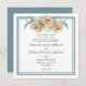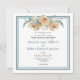 Esta elegante Invitación a la Boda de Verano con Floral acuática está diseñada con un conjunto de flores en tonos crema y taupe con un borde verde azul sobre un fondo blanco. El reverso está decorado con un ramo de flores a juego sobre un fondo verde azul. Para personalizar esta tarjeta, simplemente inserte sus detalles en nuestra plantilla sencilla, reemplazando el texto de ejemplo.