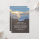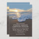 Románticas invitaciones de bodas de destino con una costa costera, una hermosa puesta de sol y una moderna plantilla de boda.