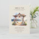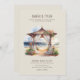 Sencilla invitación a bodas de verano que le ofrecen el escenario para su romántica boda en la playa. Este encantador diseño cuenta con una escena acuática de una pagoda de ceremonia de boda de madera, en una playa frente al mar, cubierta de azulejos y flores tropicales. Perfecto para una boda casual o boho en la playa, moda costera o una boda de vacaciones de playa. El fondo y el texto tienen una paleta de colores natural y marrón, que puede cambiar en la herramienta de diseño. En nuestra colección Sunset Beach Wedding se pueden encontrar artículos de papelería para bodas coordinados y decoración del día de los eventos,
