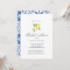 Celebre a la futura novia con esta elegante invitación de boda de estilo mediterráneo. Con limones de acuarela, flores suaves azules y letra manuscrita, es perfecta para una boda de verano o en un jardín. Personalice el texto fácilmente para su evento especial. Ideal para una celebración con tema de limón, inspiración italiana o chic rústico.