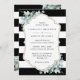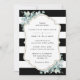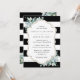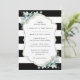 Elegante invitación a bodas verdes con hojas de eucalipto. Elementos coincidentes disponibles. Invitación a una boda a rayas blancas y negras con vegetación.