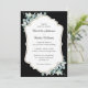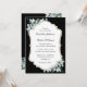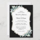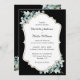 Elegante tarjeta boda de color negro con hojas de eucalipto sobre un fondo negro. Elementos coincidentes disponibles.