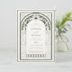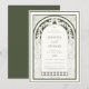 Invitación a la boda de la Boda del Arco del Arco de Verdor Art Nouveau. Paleta de color verde oscuro con un fondo beige suave.