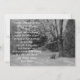 La hermosa fotografía de un banco rodeado de árboles hace una impresionante invitación a la boda. Los árboles cubiertos de escarcha crean un hermoso paisaje invernal. Increíble fotografía en blanco y negro.