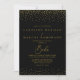 Compliquen su rústico evento boda español con esta invitación al matrimonio boho boho negro de oro confetti. El diseño está decorado con un purpurina de color oro acuático, un confetti de fondo negro.
