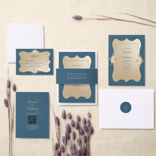 Navy Gold Floral Boho WeddingDiseñado por Dia Sha