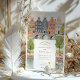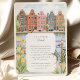 Trae el encanto holandés a tu boda con esta caprichosa invitación a acuarela que incluye las emblemáticas casas de los canales de Ámsterdam en suaves tonos de coral, azul pizarra y ocre dorado. La escena delantera muestra un canal pacífico, un puente con arcos suaves y bicicletas que descansan junto a árboles frondosos. En la parte trasera hay una hilera de casas históricas con toboganes frescos y una bicicleta verde clásica. Con un suave acento floral en amarillo y naranja, este diseño es ideal para una romántica celebración inspirada en el destino en los Países Bajos.
