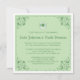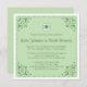 Invitación elegante del boda del día del St Patricks que ofrece una hoja del trébol dentro de una herradura y de una frontera con las esquinas adornadas en un pálido - fondo verde. Un texto verde más oscuro de la invitación que es completamente adaptable. Diseño elegante y moderno para los bodas temáticos del día del St Paddys. Otros productos de coordinación están también disponibles. Si usted requiere un producto de coordinación que no esté disponible o tenga peticiones de encargo satisfacen utilizan el vínculo del contacto de la tienda arriba.