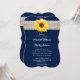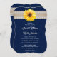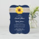 Fácil de personalizar la invitación a la boda de girasol rústico color azul marino inspirada en la burlap y el encaje.