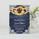 Elegantes invitaciones de boda de girasol ideal para una romántica fiesta de boda rústica de color azul marino inspirada en flores de girasol. Elementos coincidentes disponibles.